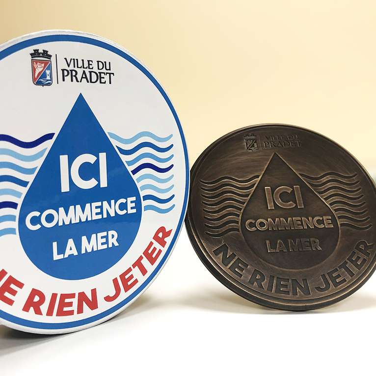 Explorer...Réalisation d'une signalétique au sol "Ici commence la mer". Disque de pierre de lave émaillée, mais également de disque de laiton gravé.